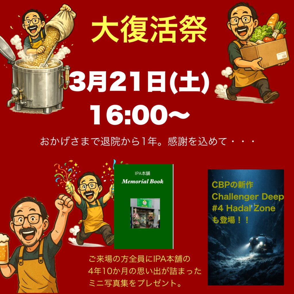 それから1年。皆さんには本当に温かく迎えていただき、元気と体力を取り戻すことができました。その感謝をの気持ちを込めて、「大復活祭」と題したミニ・パーティを開催したいと考えています。